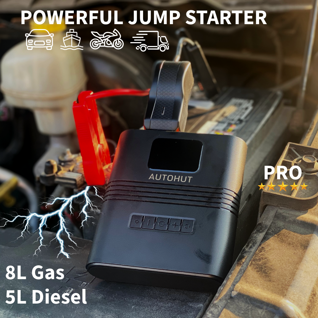The Jump Starter can typically jump a vehicle anywhere from 2 times for larger trucks to 20 times for standard cars on a single charge, depending on its charge and the vehicle's size. The AutoHut Pro can Double that with Trucks being our main focous.